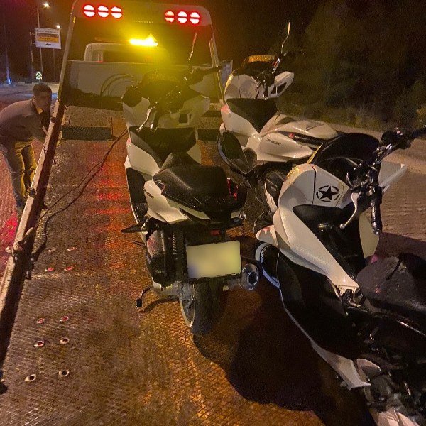 Fethiye ilçesinde çevre yolu Osman Kaya Bulvarı üzerinde abartı egzozlu ve plakasız motorların yarıştığı, çevreye rahatsızlık verdikleri ve yoldan geçen diğer araçların can ve mal güvenliğini tehlikeye sokacak hareketlerde bulundukları ihbarı üzerine ekipler harekete geçti.