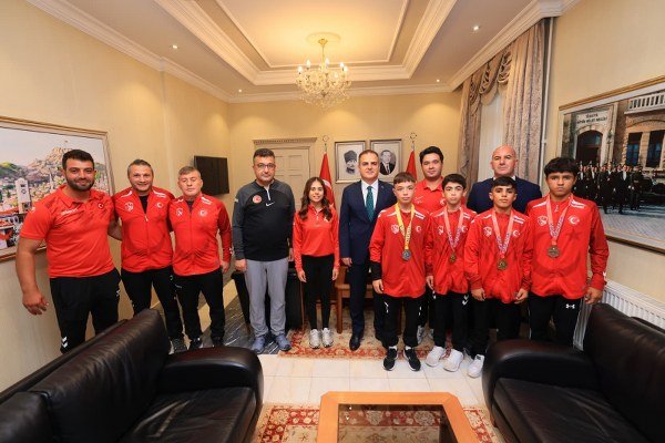 Dünya ve Balkan şampiyonlarında Muğla’yı temsil eden başarılı sporcular, Muğla Valisi Dr. İdris Akbıyık’ı makamında ziyaret ettiler.