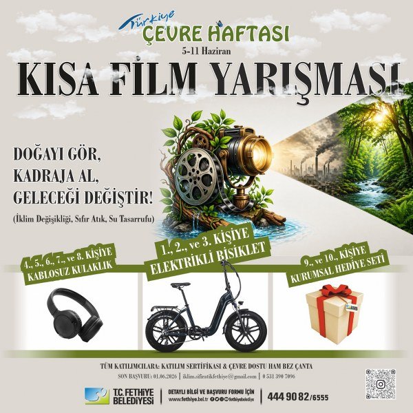 Doğa ve iklim farkındalığını geliştirmeyi amaçlayan yarışmalar; “Atıktan Işığa Tasarım Yarışması” ve “Çevre ve Doğa Koruma Konulu Kısa Film Yarışması” başlıklarıyla katılımcılarını bekliyor. Her yaştan vatandaşın katılımına açık olan yarışmalarla, geri dönüşümün önemi ve çevre duyarlılığına dikkat çekilmesi hedefleniyor. Yarışmalara başvurular başlamış olup, son başvuru tarihi 1 Haziran 2026 olarak açıklandı. Katılım şartları ve başvuru detaylarına Fethiye Belediyesi’nin resmi internet sitesi üzerinden ulaşılabileceği belirtildi.