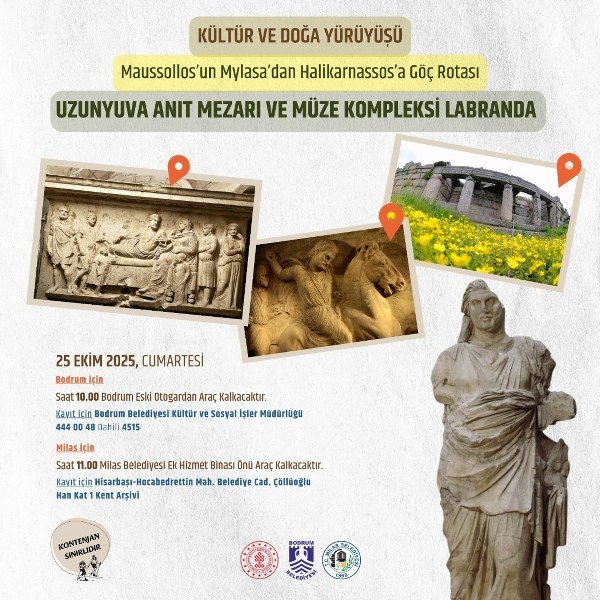 Bodrum Belediyesi ve Milas Belediyesi iş birliği ile yeni bir kültür rotası oluşturuluyor. “Rotamızda; Arkeolojiyi Keşfet, Kültürü Yaşa, Hikayeni Paylaş” sloganıyla yapılacak kültür yürüyüşleri, katılımcılara tarihi ve kültürel mirası tanıtmayı hedefliyor.