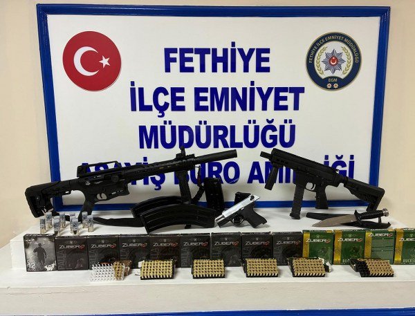 Asayiş Büro Amirliği ekiplerince adreste yapılan aramalarda (ev içerisinde ve evin müştemilatında) şüpheliye ait 1 adet otomatik tabanca ve şarjörü, 1 adet av tüfeği, 1 adet kuru sıkı tabanca ve şarjörü, av tüfeğine ait 123 adet kartuş, 251 adet otomatik tabancaya ait mermi, 1 adet içime hazır esrar maddesi, 2 gram esrar maddesi ile 1 adet kasatura tabir edilen bıçak ele geçirildi. Konuyla ilgili tahkikata başlanırken, cumhuriyet savcısının talimatıyla şüpheli G.P.F gözaltına alındı.
