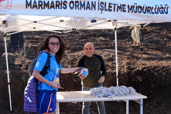 Marmaris’te gerçekleştirilen Marmaris Ultra Trail Maratonuna katılan sporcular doğaya binlerce çam tohumu serpti.