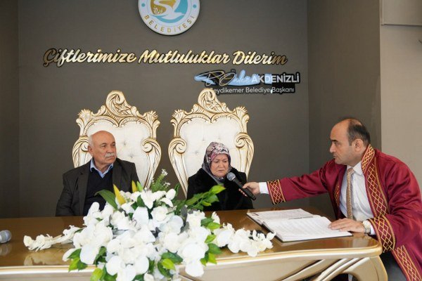 Seydikemer Belediyesi Nikâh Salonu’nda düzenlenen törende nikâh akdini Seydikemer Belediye Başkanı B. Önder Akdenizli gerçekleştirdi. Emine teyze ve Yusuf amcanın mutlulukları yüzlerinden okunurken, nikâh anında duygu dolu anlar yaşandı. Törene katılanlar da bu anlamlı güne tanıklık ederek çiftin sevincine ortak oldu.