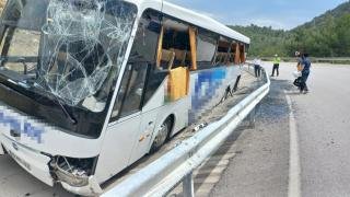 Göcek’te kontrolden çıkan otobüs refüjdeki kanala düştü
