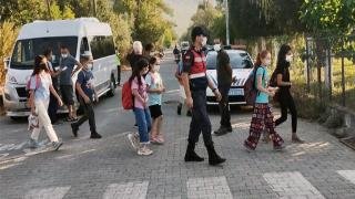 Yüz yüze eğitim-öğretimin başlamasının ardından Muğla İl Jandarma Komutanlığı’na abğlı ekipler okul önlerinde trafik akışı ve öğrenci servislerinde maske mesafe denetimi yaptı.