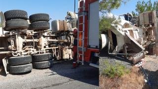 Muğla'nın Bodrum ilçesinde devrilen beton mikserinin sürücüsü hafif şekilde yaralandı.