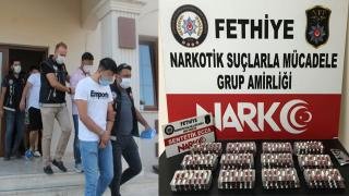 Şehir dışından Fethiye'ye gelen ve sadece özel reçete ile satılan Sentetik eczaları sahte reçeteyle temin ettikleri ve piyasaya sürecekleri ihbarı üzerine harekete geçen Fethiye Narkotik Suçlarla Mücadele Grup Amirliği ekipleri yaptıkları operasyonda 4 kişiyi gözaltına aldı.