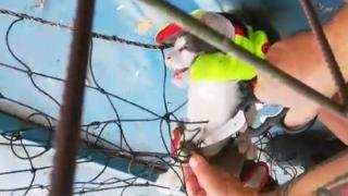 Muğla’nın Fethiye ilçesinde oyun parkındaki fileye dolanıp mahsur kalan kedi itfaiye ekipleri tarafından kurtarıldı.