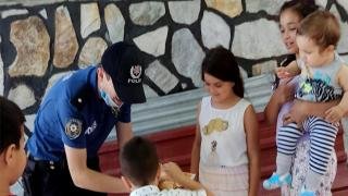 Muğla'nın Kavaklıdere İlçesinde polis ekipleri, kapı kapı dağıttıkları şeker ve çikolatalarla çocukları mutlu etti.