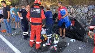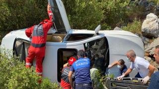 Şarampole yuvarlanan araçtan yaralı vaziyette itfaiye tarafından çıkarıldı