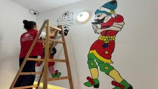 Muğla Gençlik ve Spor İl Müdürlüğü bünyesindeki Yatağan Gençlik Merkezi gönüllü gençleri okullar açılmadan okullara renkli figürlü çalışmalar yapıyor.