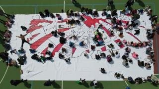 6 Şubat'ta yaşanan deprem felaketinden sonra ilimize gelerek Muğla Gençlik ve Spor İl Müdürlüğüne bağlı Turgutreis Öğrenci Yurdunda misafir olan depremzede çocuklar için, Muğla Gençlik ve Spor İl Müdürlüğü tarafından Gençlik Liderleri ve Gönüllü Gençler eşliğinde "Cumhuriyetimizin 100. Yılında Yaralarımızı Birlikte Sarıyoruz" temalı dev Türkiye haritası resim workshop boyama etkinliği düzenlendi.
